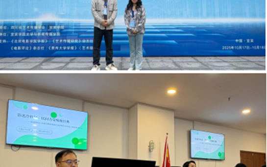10月17日至18日,四川省艺术传播学会首届学术年会暨“智能艺术·跨界传播:新技术语境下的艺术传播”学术论坛在宜宾学院成功举办,我院曾诗雨老师、吴文港老师应邀参会。据悉,本次年会聚焦文化强国与数字中国战略的深度融合,围绕“文旅融合”“数字艺术”“美育转型”等前沿议题展开深入探讨,吸引了来自全国多所高校、科研机构及文化单...