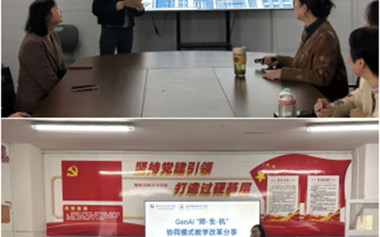 2025年11月5日,外语教研室于学院会议室召开主题教学研讨会,聚焦人工智能赋能教学创新与学科竞赛筹备工作。会议就本科一年级“GenAI‘师-生-机’”教学改革实践及首届“国传艺杯”英语词汇能力大赛赛事规划进行了深入研讨与部署,全体教研室教师参会。研讨会上,大一课程组组长胡欢老师详细汇报了“GenAI‘师-生-机’”教...