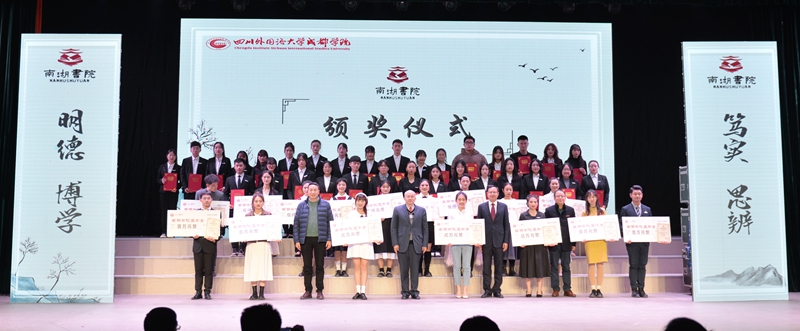 塑造学生美好未来,引领学生卓越成长。12月16日晚,我校首届南湖书院奖学金面试评审会在观澜堂热烈的氛围中拉开帷幕。学校领导,各学院、各职能部门负责人,南湖书院导师和学员以及部分师生代表现场观看。评审会还通过网络直播的方式,吸引了6000余人次的观看和关注。我院20级国际汉语教育专业的胥可涵、新闻学汪珊竹同学担任本次评审会主持人。