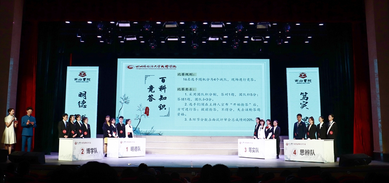 百科知识竞答环节,选手们分为明德队、博学队、笃实队和思辨队,以文、史、哲、经、艺等方面的知识进行激烈的竞答角逐,展现了丰富的知识储备量和广博的知识面。