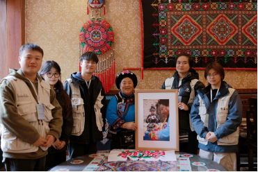 学生将获奖作品赠予羌绣传承人,这一举动不仅展现了学生艺术创作能力的提升,表达了对传承人精湛技艺的敬意,更深刻体现了实践教学的深远价值。通过在真实的社会文化场域中学习与创作,学生在观察、交流与表达中深入理解文化精髓,在思想碰撞中激发灵感,在文化传递中彰显温度,实现了从课堂到社会、从学习到创作、从创作到回馈的完整实践闭环。