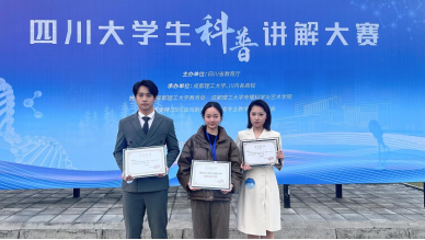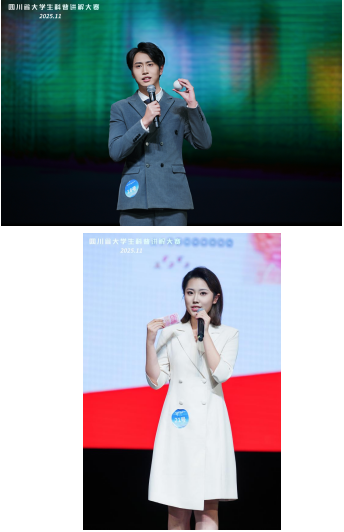 2025年11月27日,由四川省教育厅主办、成都理工大学承办的四川省大学生科普讲解大赛圆满落幕。成都外国语学院国际传媒艺术学院罗琳珑老师带队参赛,学生王若弛、窦浩文凭借扎实的科普素养与出色的现场表现,在二十余所高校、四十余名选手的激烈角逐中脱颖而出,分别荣获二等奖、三等奖;成都外国语学院同时获评 “优秀组织奖”,展现了学校在赛事组织协调、师生参赛支持方面的扎实能力。