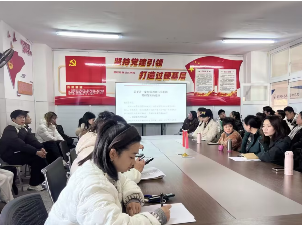 会上,叶鹏书记首先强调了高校教师师风师德的重要性,要求广大教师应提高思想认识,随后带领全体教师学习了四川省高等学校教师职业行为细则,重点解读了“禁止性规定”“职业责任边界”“师德失范处理办法”“遵守学术规范”等核心内容,结合教育系统内典型案例,剖析了违反教师行为准则的危害后果,引导教师深刻认识“为谁培养人、培养什么人、怎样培养人”的根本问题。